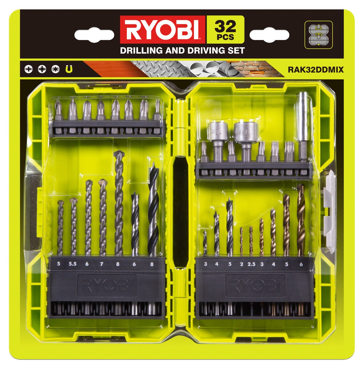 Ryobi bor- og bitssett 32 deler RAK32DDMIX