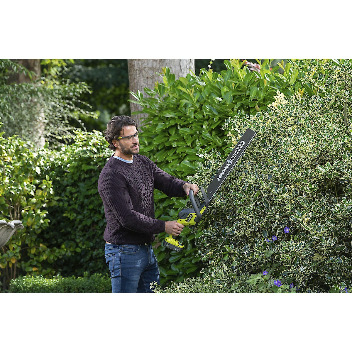 • Ryobi RY18HT50A-0 – hekksaks med et 50 cm langt sverd. Kapper grener på opptil 24 mm.