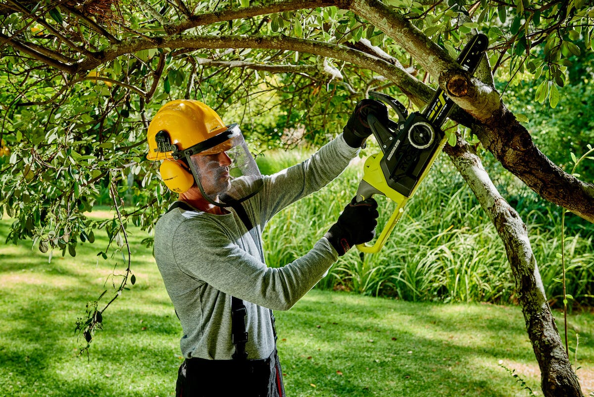 • Kapp og sag med batteridrift med et 30 cm langt sverd, både inne og ute.