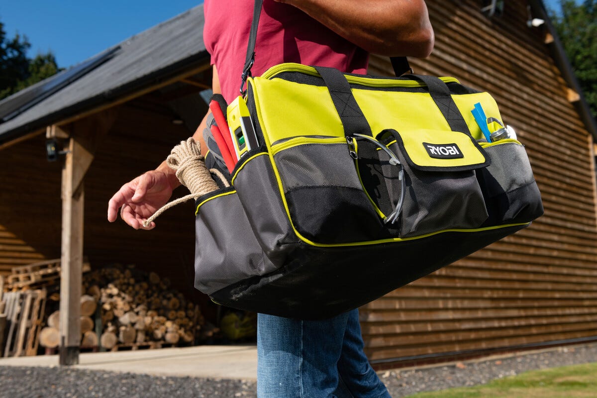 • Ryobi verktøyveske med bærestropp – enkelt å pakke ned, bære med og jobbe med.