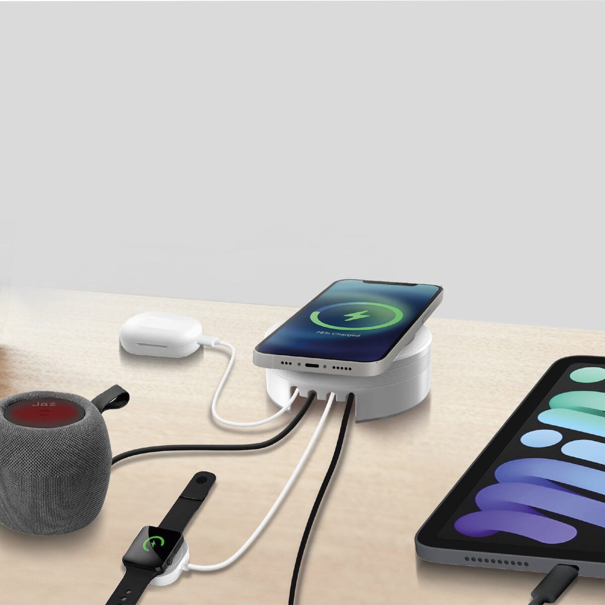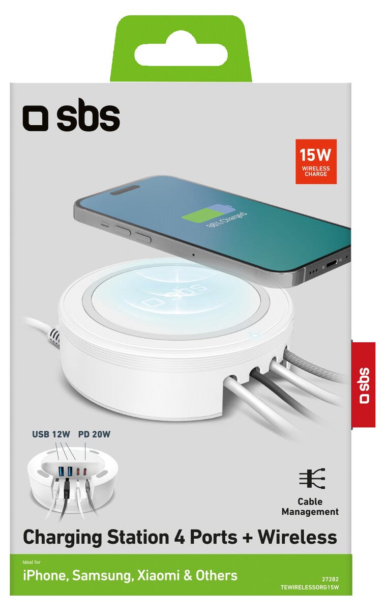 SBS 5-i-1 Qi-lader med 2 stk. USB-A og 2 stk. USB-C