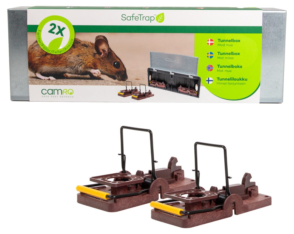 • SafeTrap tunnelboks med 2 musefeller – kan brukes igjen og igjen.