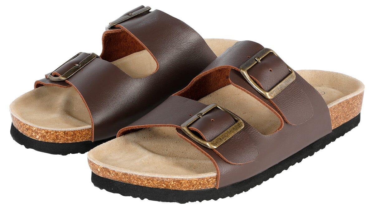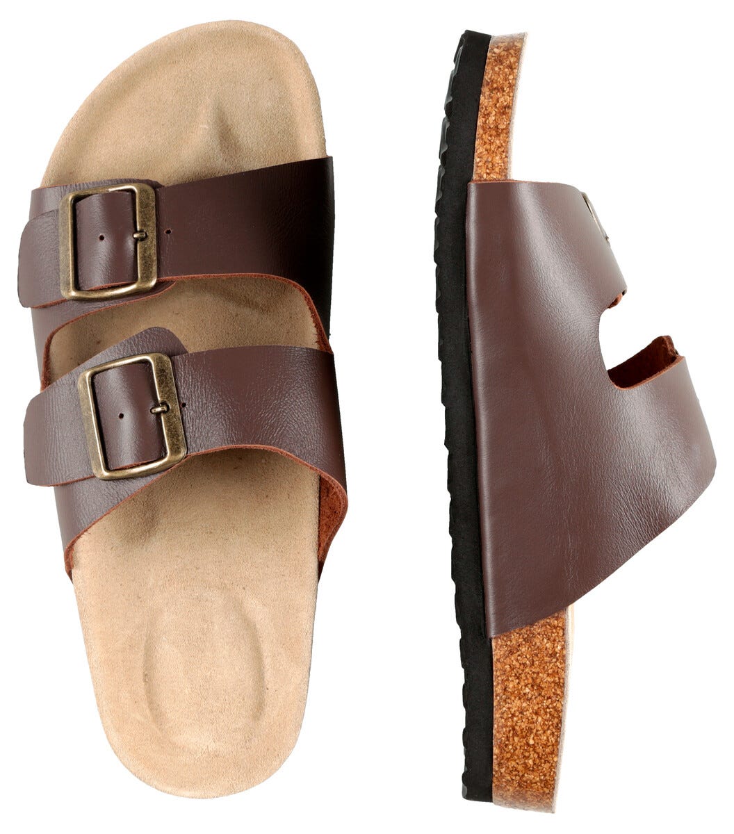 • Brune sandaler med overdel av lær og innvendig såle av behagelig mokka.