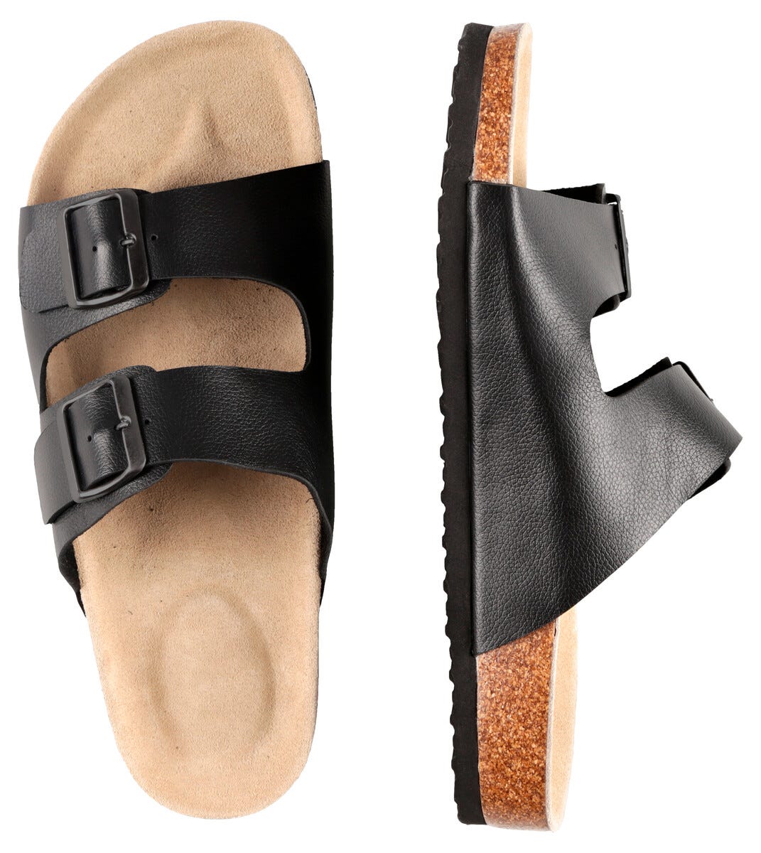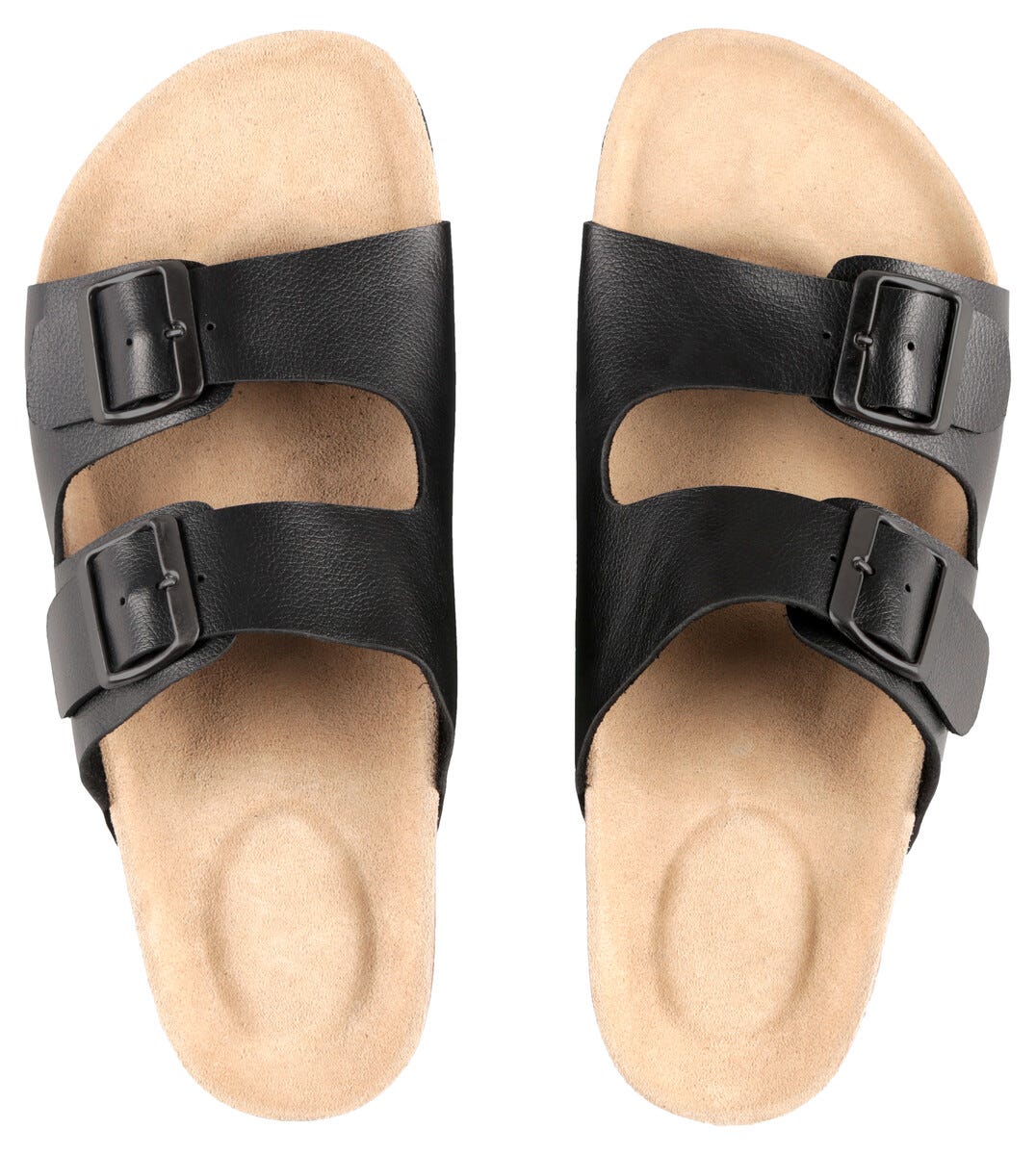 • Svarte sandaler med overdel av lær og innvendig såle av behagelig mokka.
