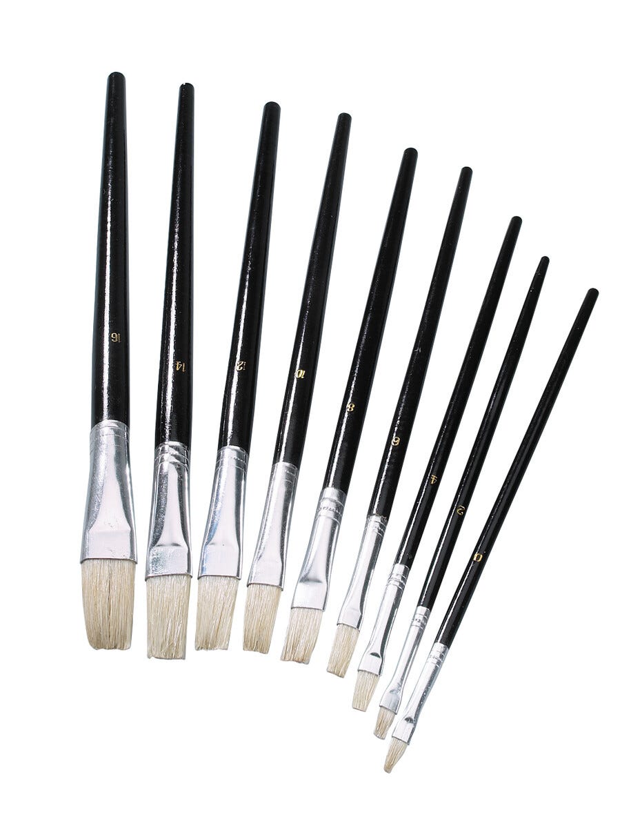 • Kunstnerpensler med svinebust og flat spiss.