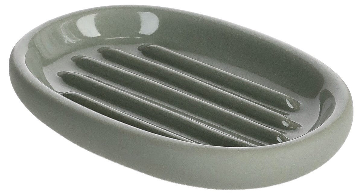 • Såpekopp i steingods med matt grønn finish til servant eller dusj.