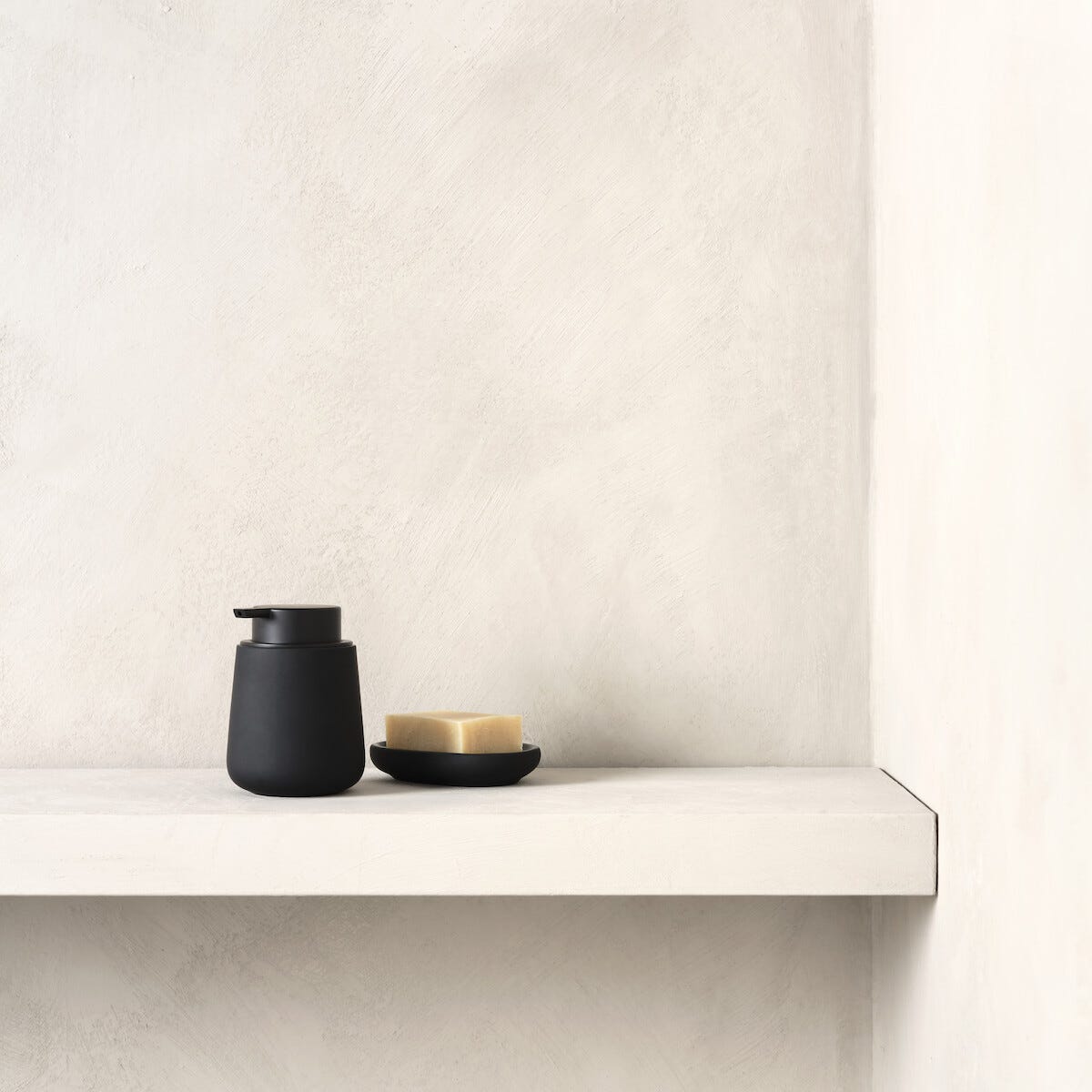 • Såpekopp i steingods med mattsvart finish til håndfatet eller dusjen.