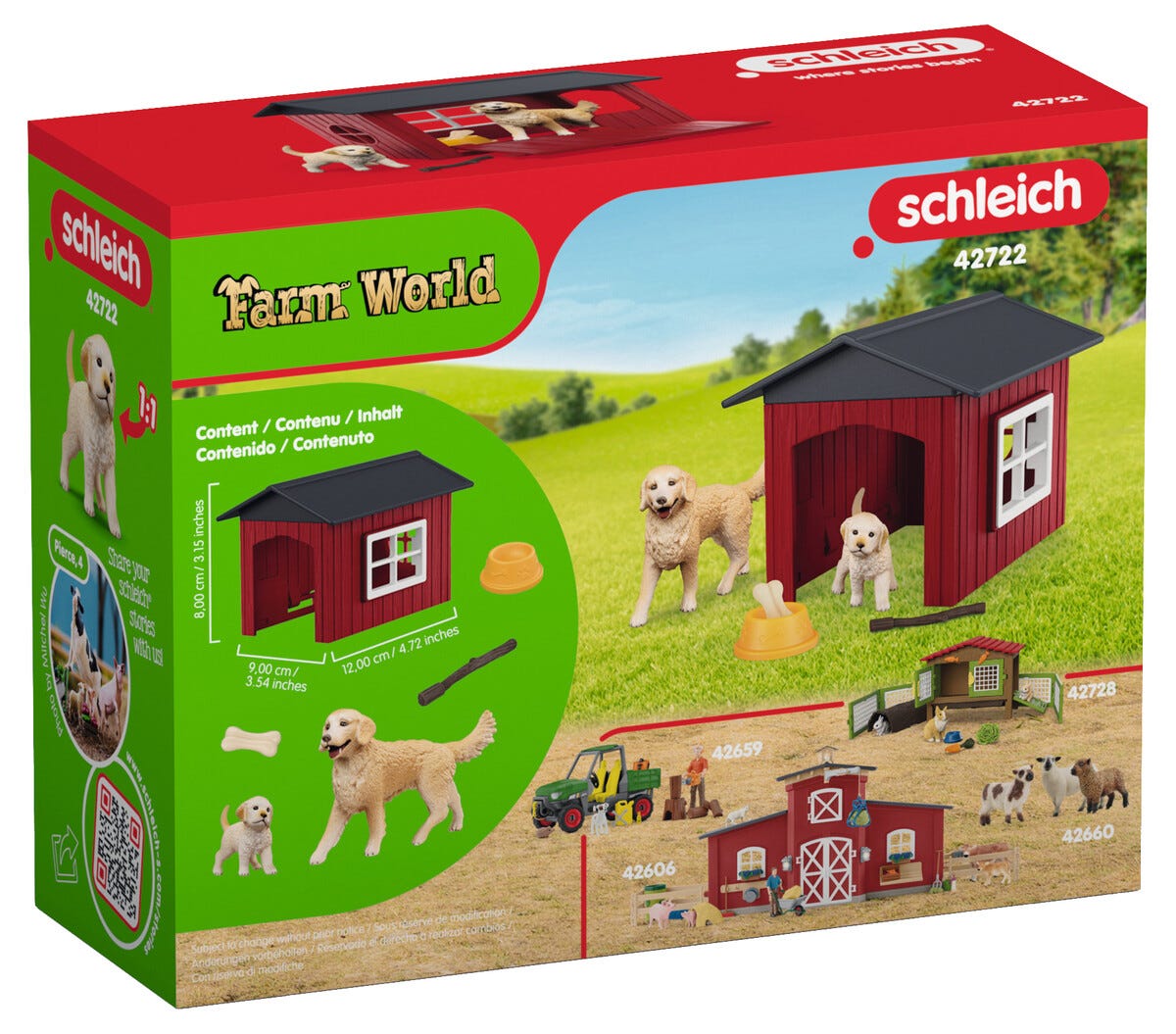 • Flott hundehus med en hund og en valp fra Schleichs Farm World-serie.