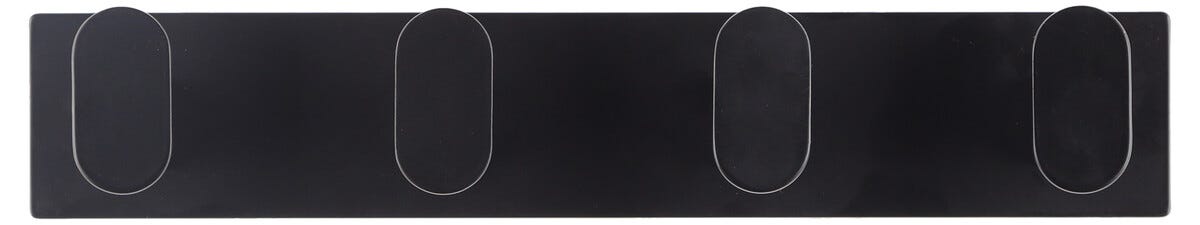 • Selvheftende, svartlakkert baderomskrok i rustfritt stål – 4 kroker.
