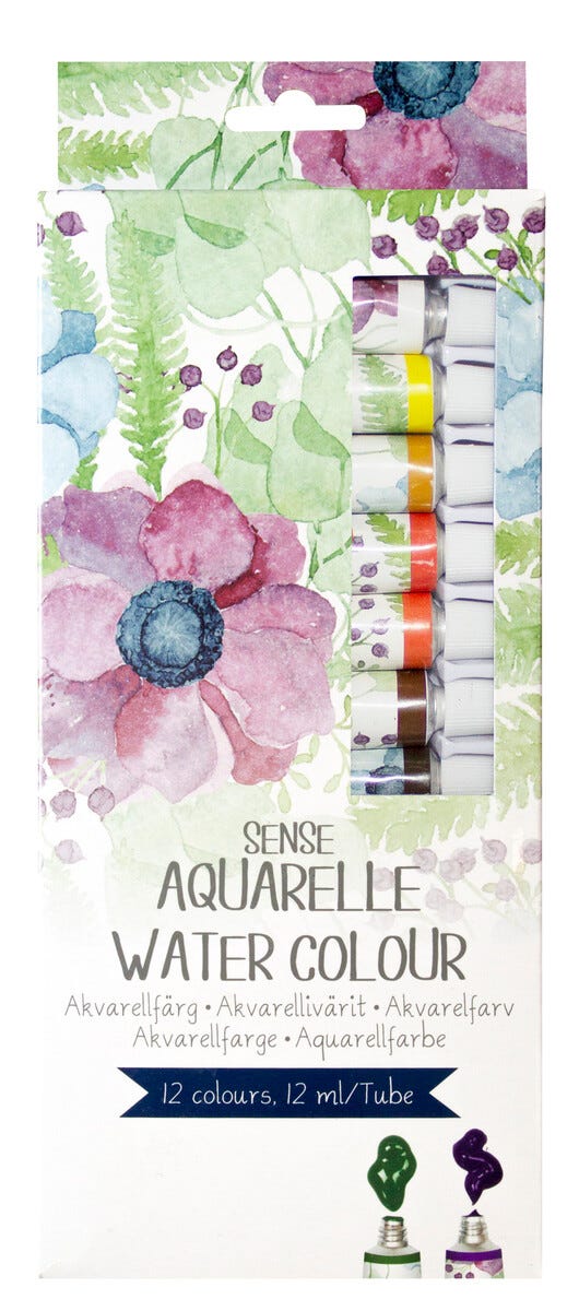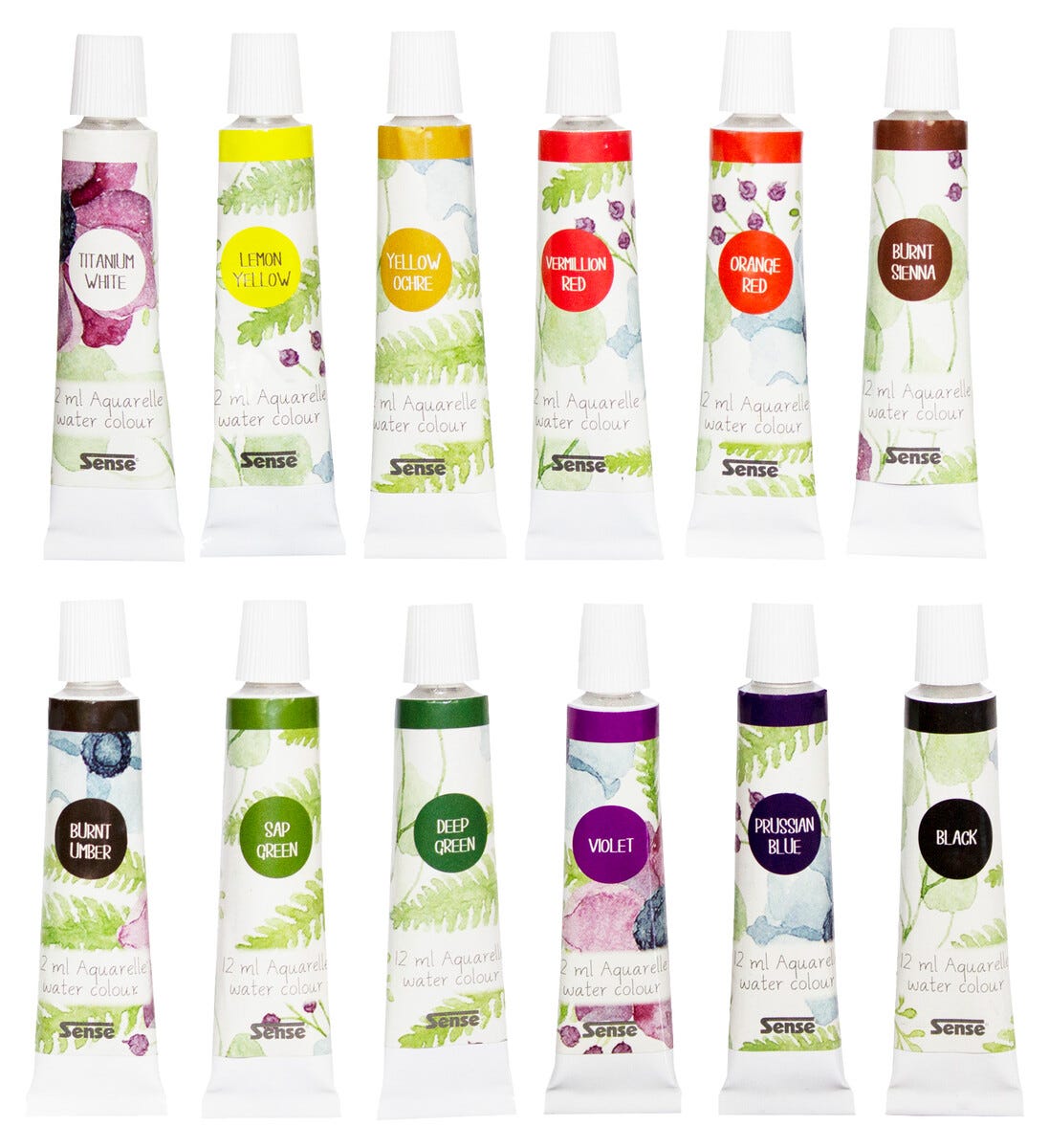 Sense akvarellmaling, sett med 12 farger, 12 ml per tube