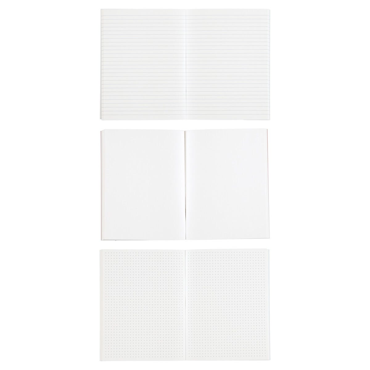 • Praktisk sett med tre notatbøker – linjerte, prikkete og blanke sider.