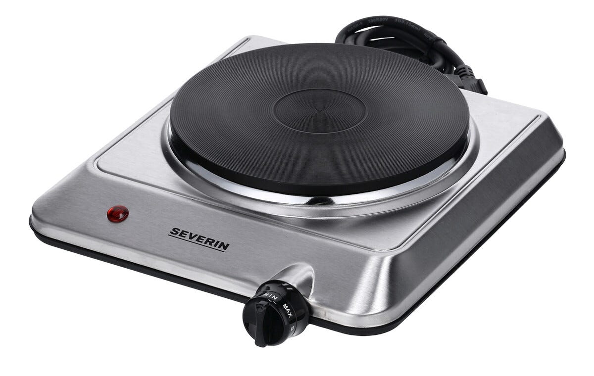 • Enkel bærbar kokeplate i børstet rustfritt stål fra velkjente Severin.