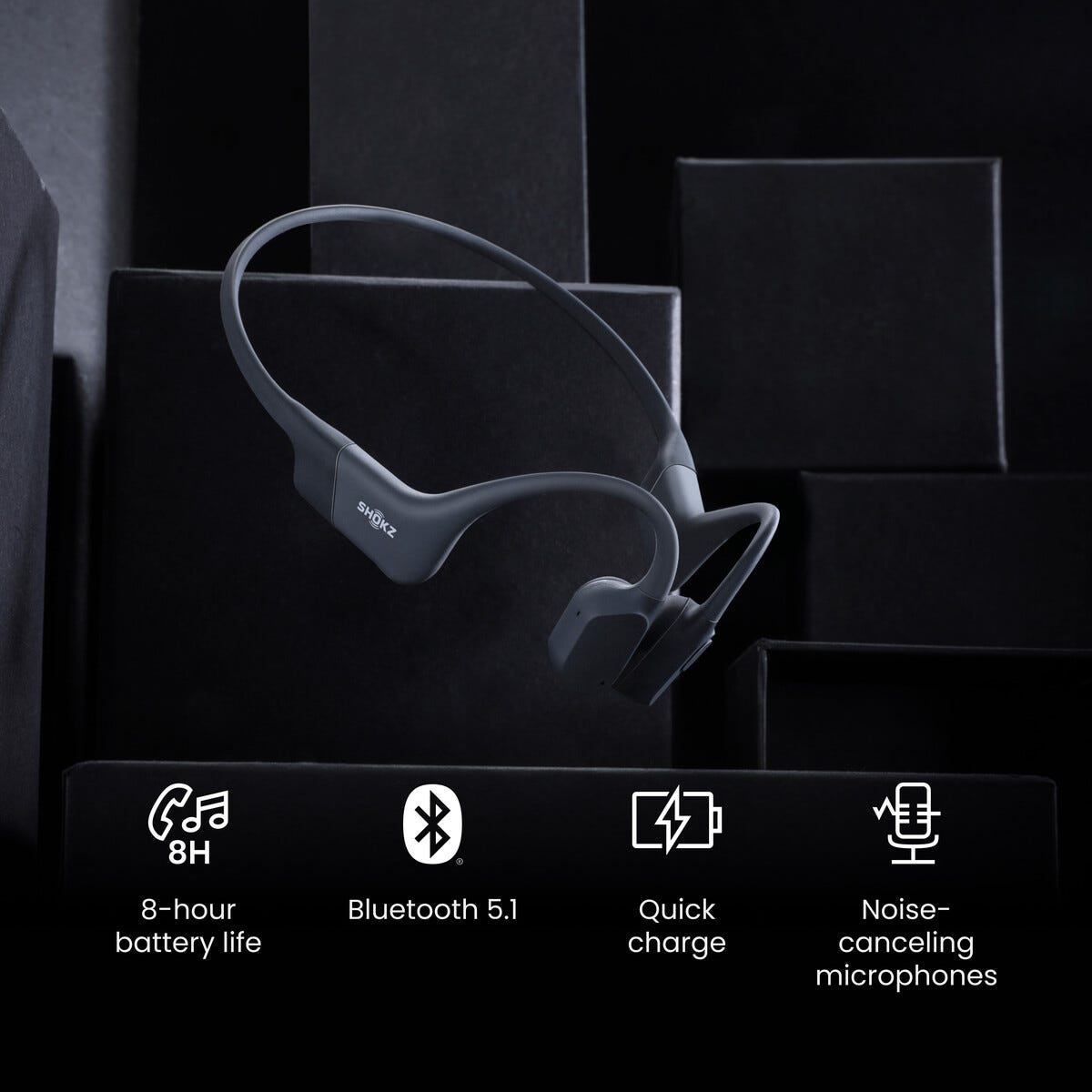 • Tåler svette og støv (IP67) – open-ear-hodetelefoner med beinledning.