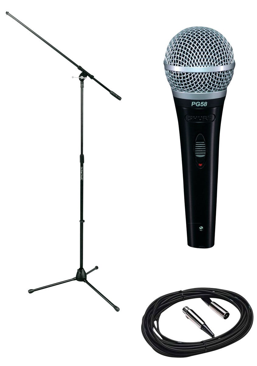 Shure mikrofon PG58 med stativ og kabel
