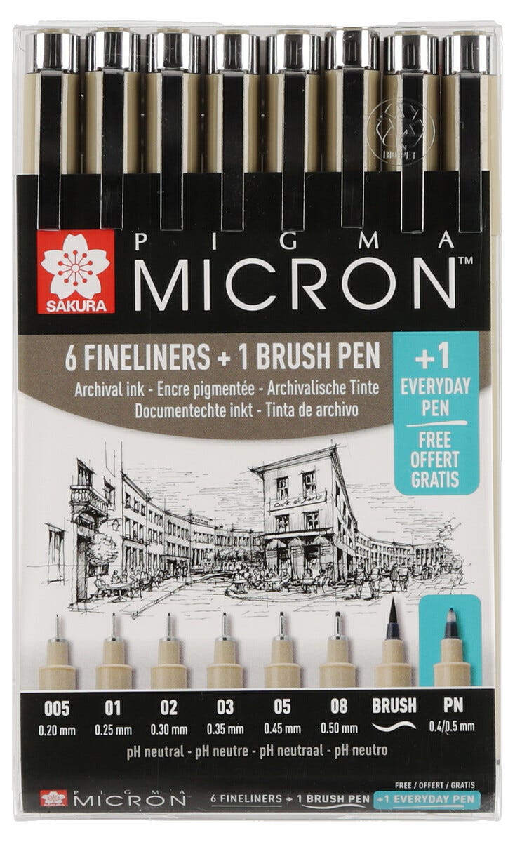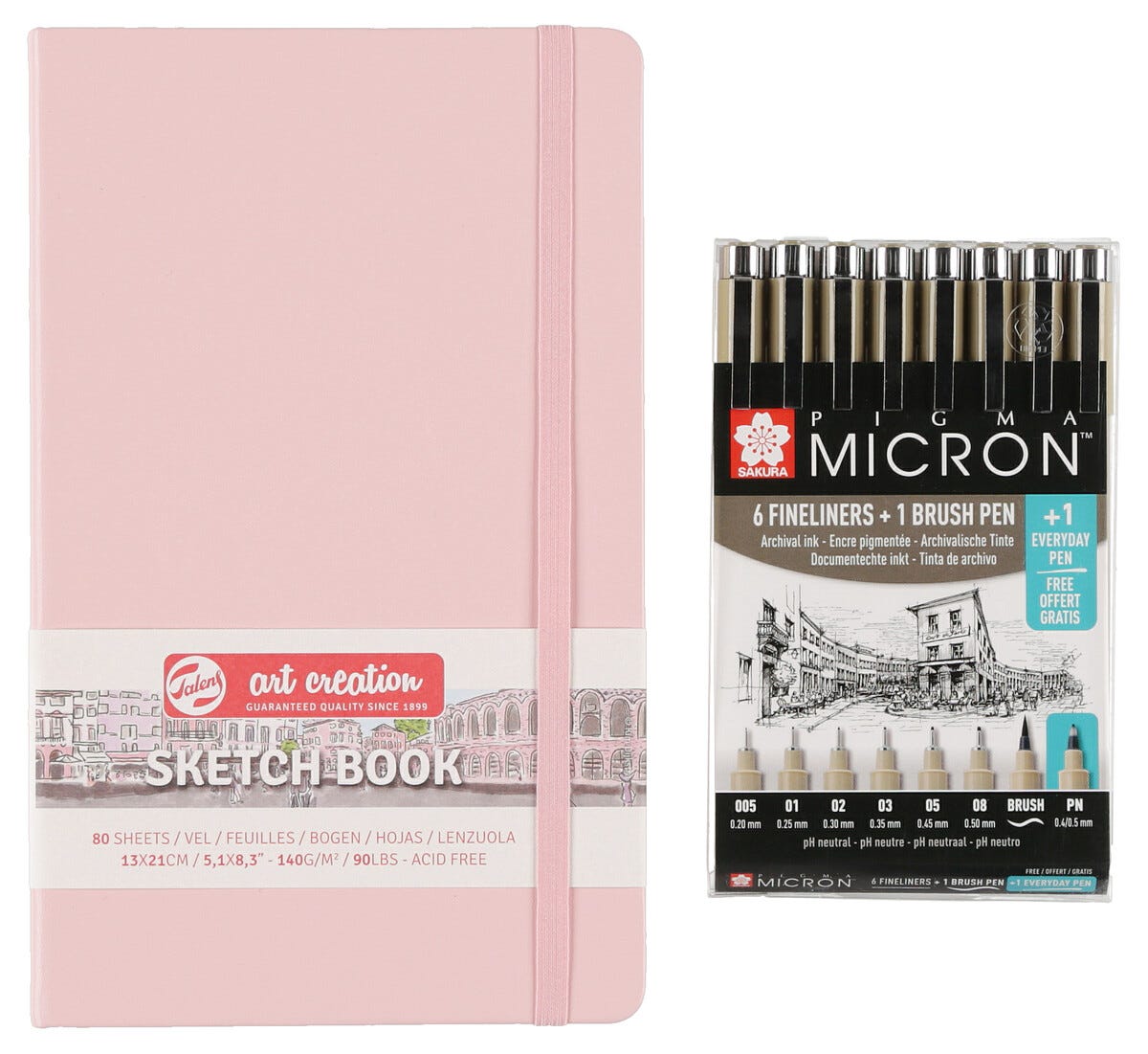 Skisseblokk og 8 Pigma Micron penner, Sakura