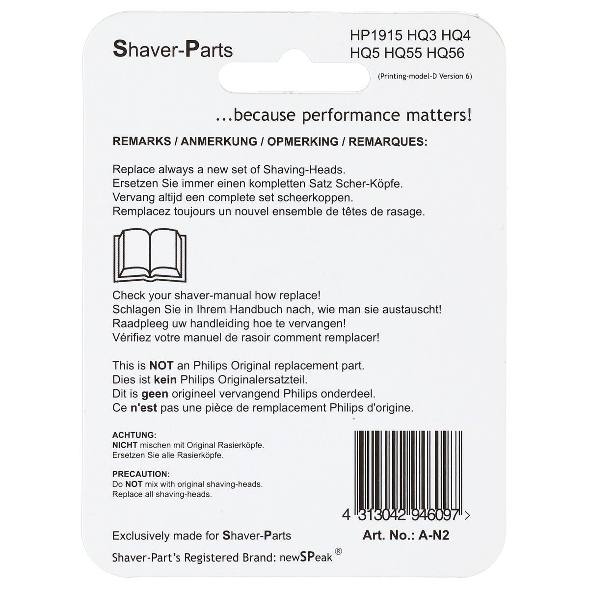 Philips og Norelco: HP1915, HQ3, HQ4, HQ5, HQ55, HQ56, HQ6.