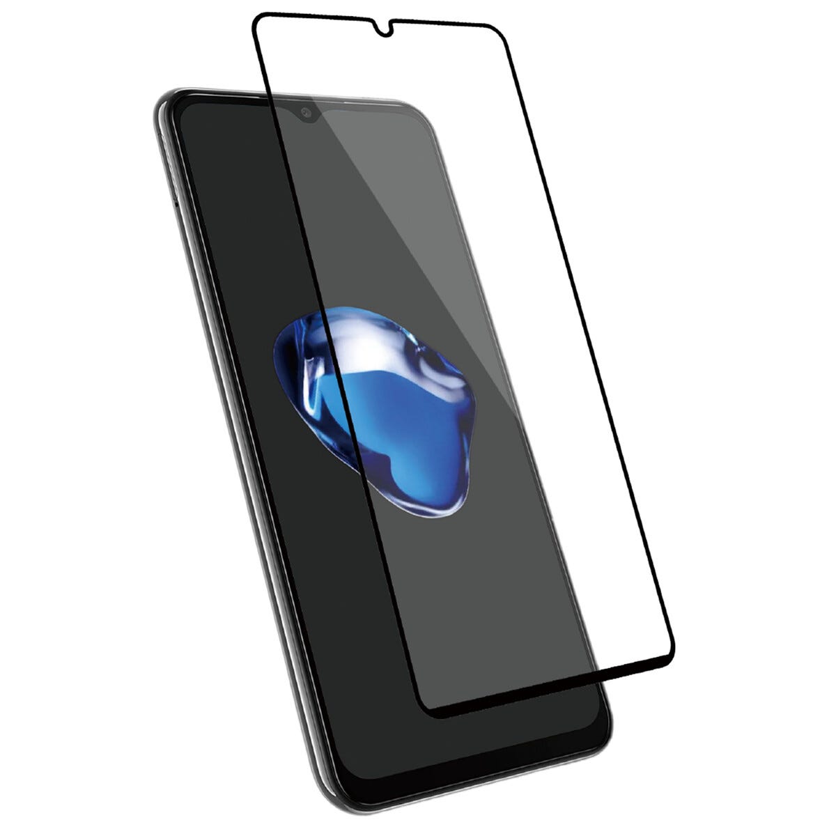 • Heldekkende skjermbeskytter med buede kanter og svart ramme.