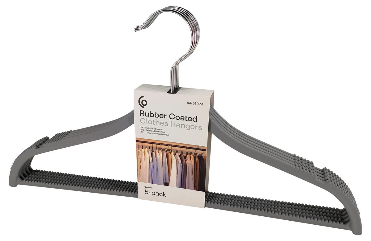 • Gummikledd henger med sklisikker overflate – holder klærne på plass.