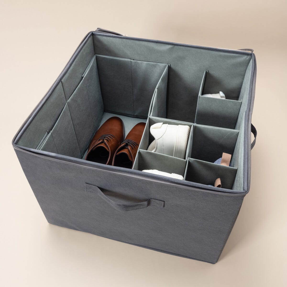Skohylle i tekstil med justerbare rom, 44,5x44,5x32 cm