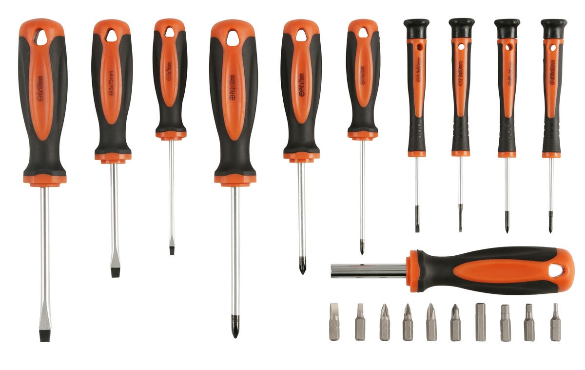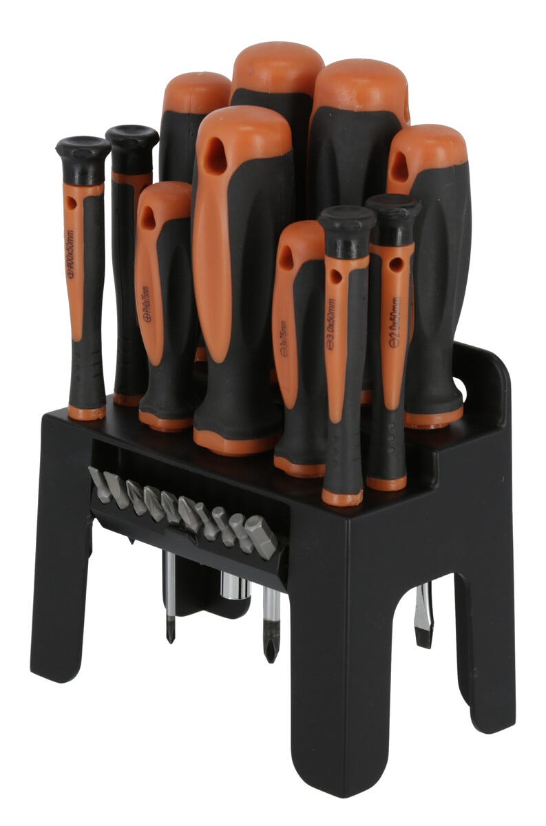 • Skrutrekkere og bits med klinger av kromvanadiumstål.