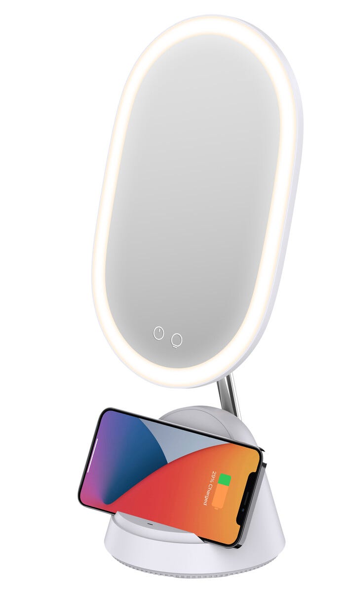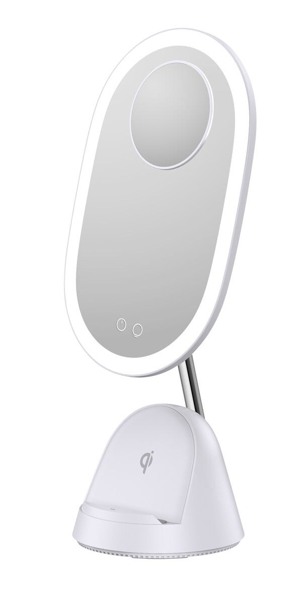 • Trendy sminkespeil med trådløs mobillading.