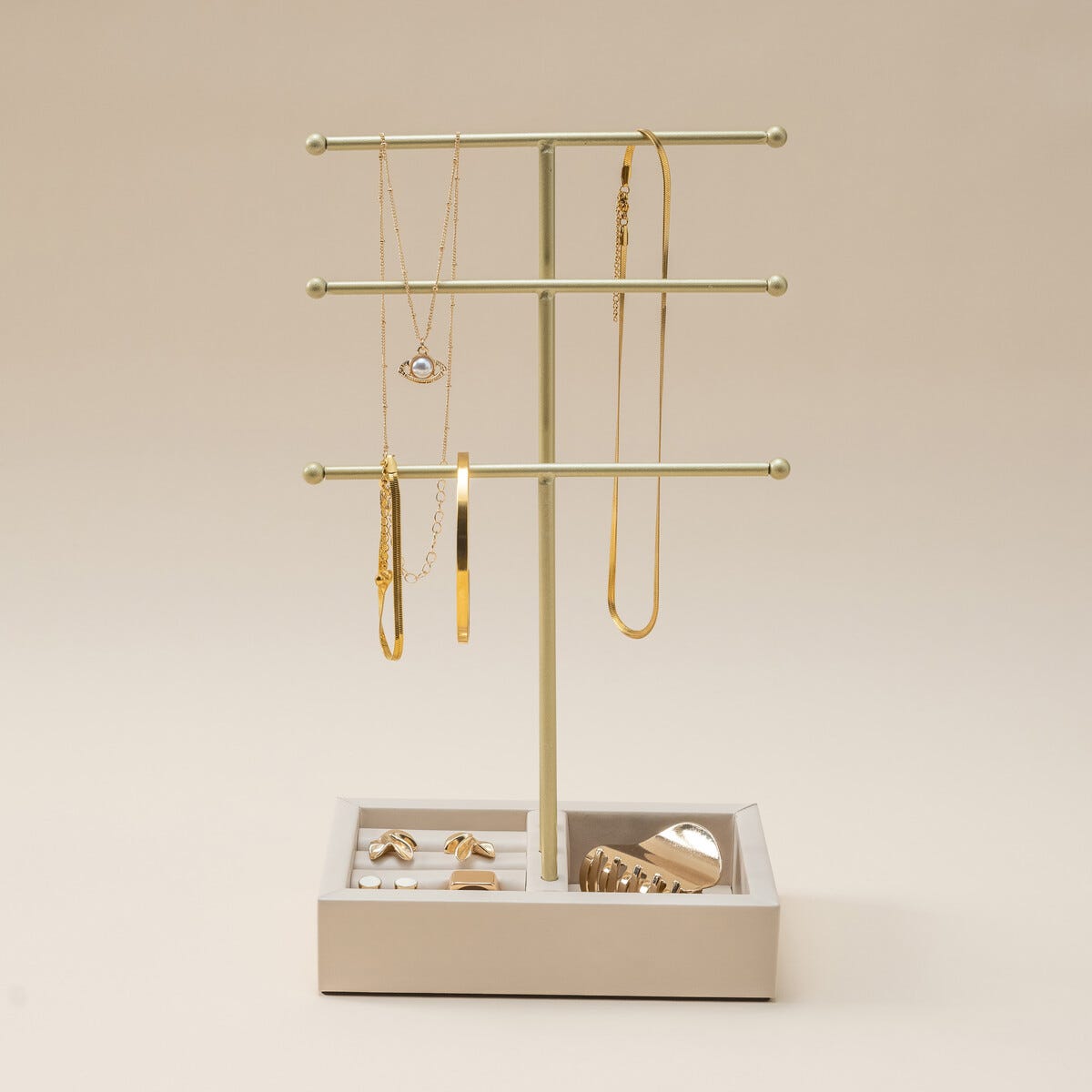 • Elegant smykketre i gullfinish – står stødig på kommode eller bord.