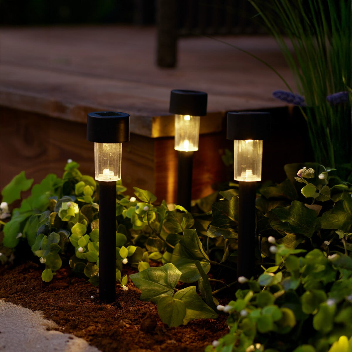 • Solcellelamper med markspyd som trykkes ned i bakken.