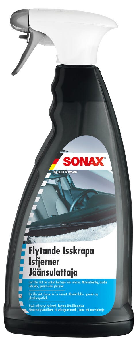 • Sonax flytende isskrape fjerner isen raskt fra bilrutene.