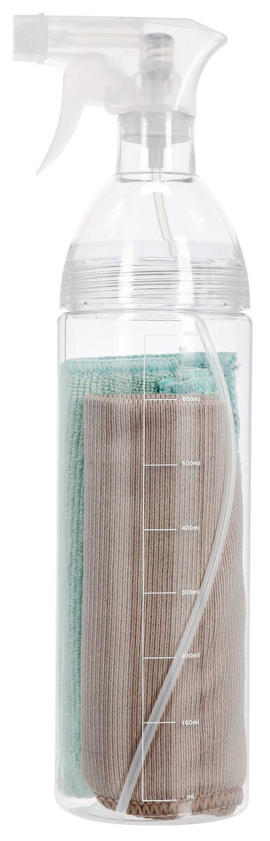• Gjennomsiktig sprayflaske for rengjøringstabletter eller eddikblandinger.