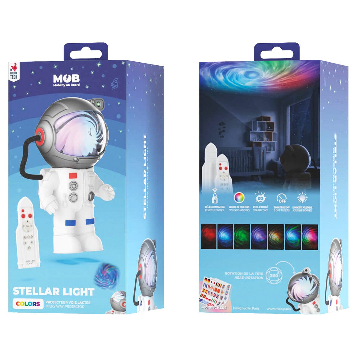 • Stellar Light projektorlampe med justerbar lysstyrke og timer.