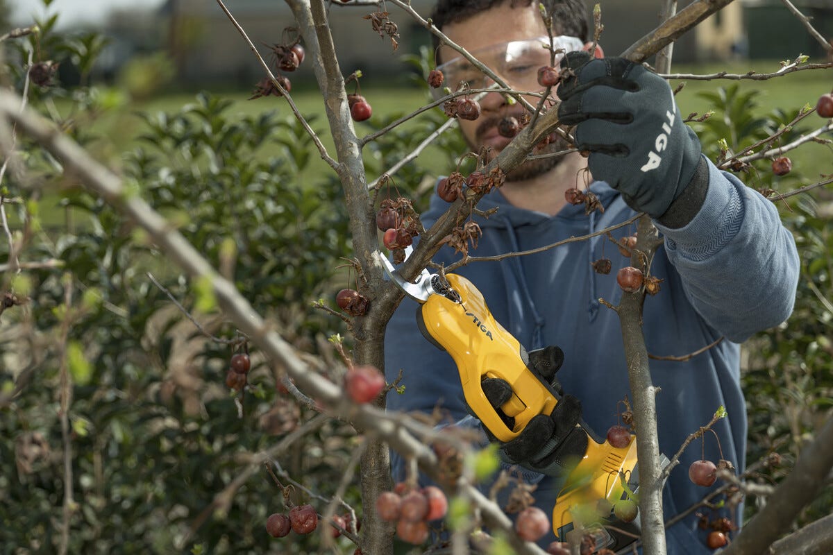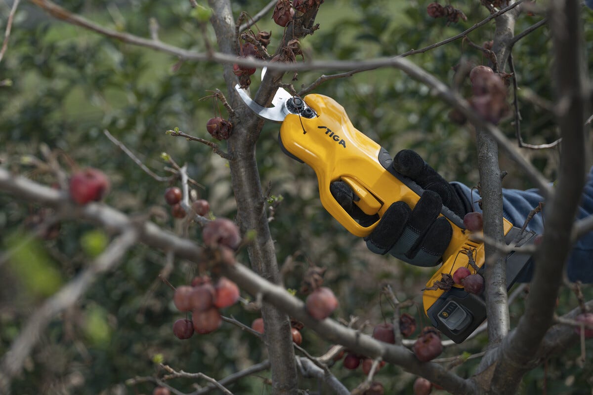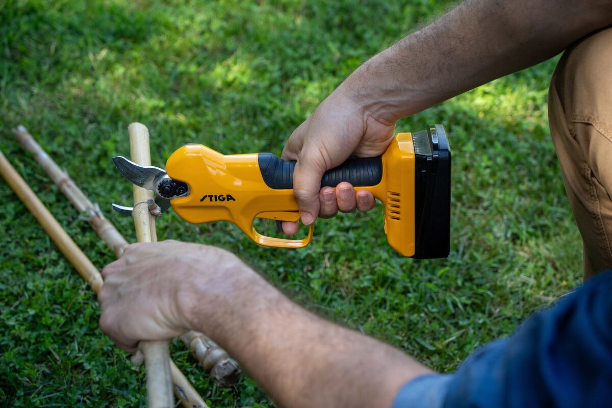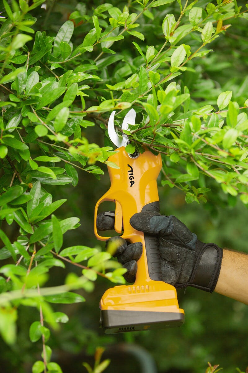 • Stiga SC 100e – batteridrevet sekatør for enkel og smidig beskjæring.