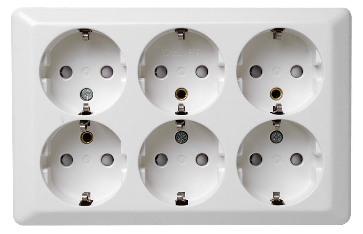 • Utenpåliggende kontakt med 6 jordede shucko-uttak.