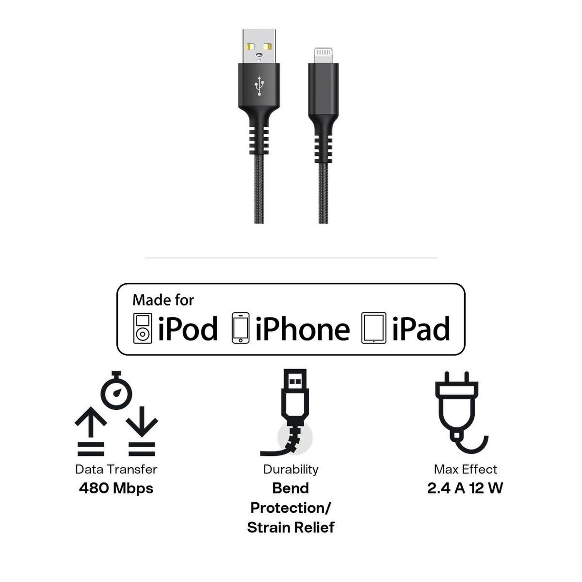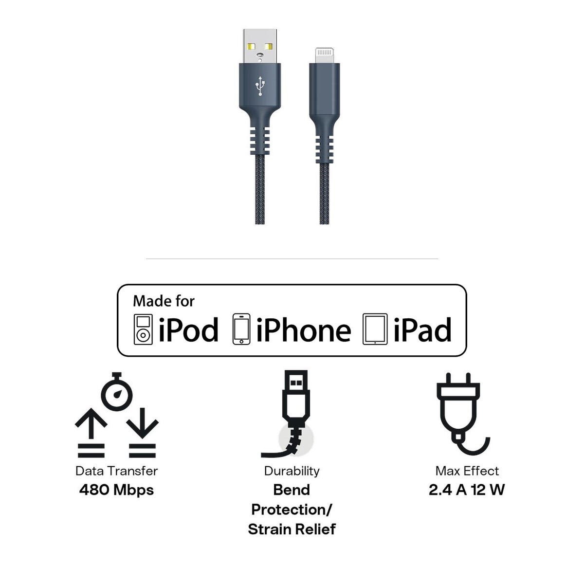 • MFi-sertifisert kabel – lad opp din iPhone eller iPad via pc-en eller adapter med USB-A.