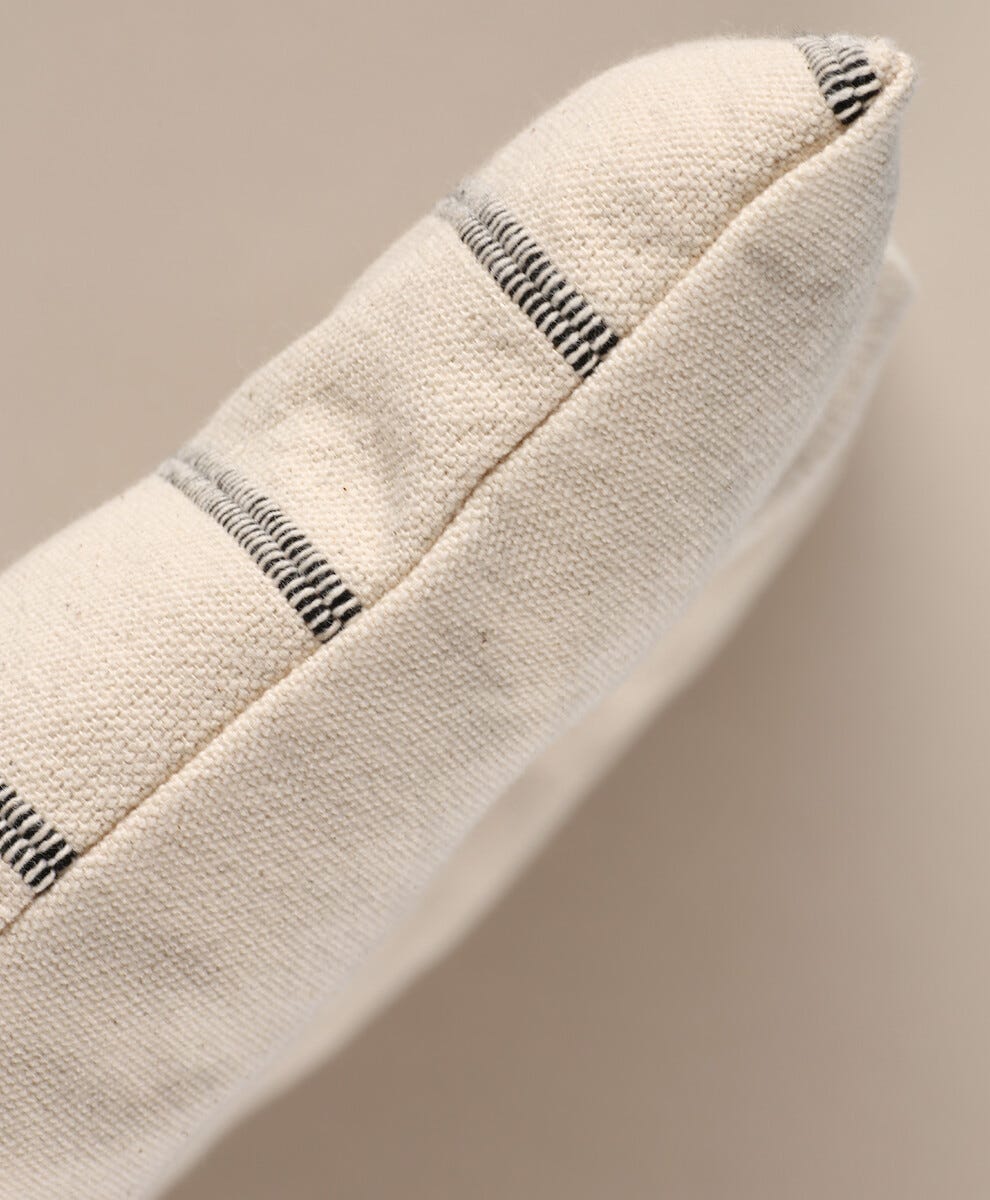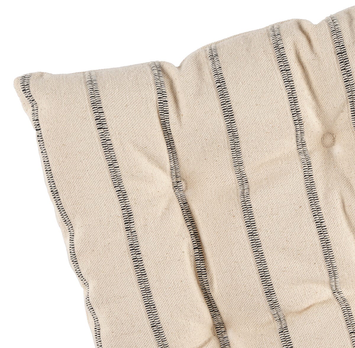 • Vendbar, myk sittepute med en stripete og en ensfarget side.