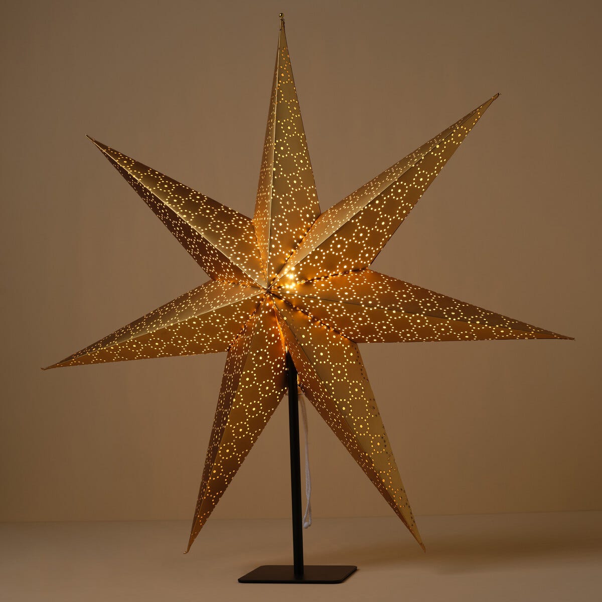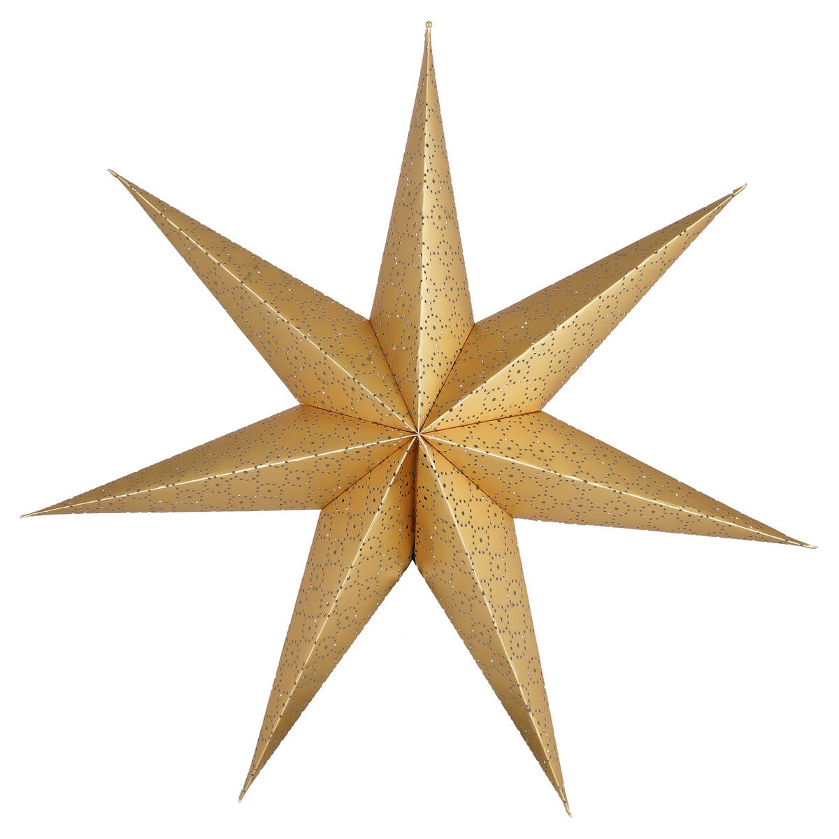 • Gyllen papirstjerne med elegant glans og hullmønster.