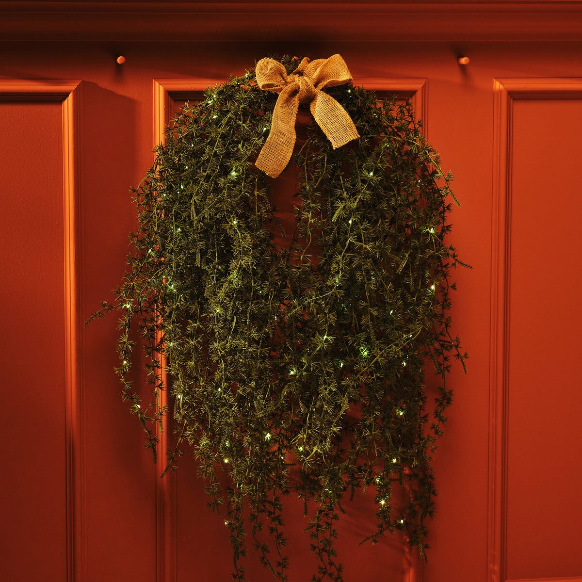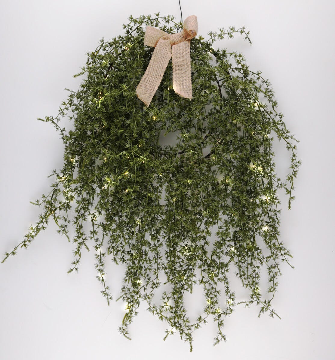 • Stor og fyldig krans med jutebånd – perfekt som jule- eller høstkrans.