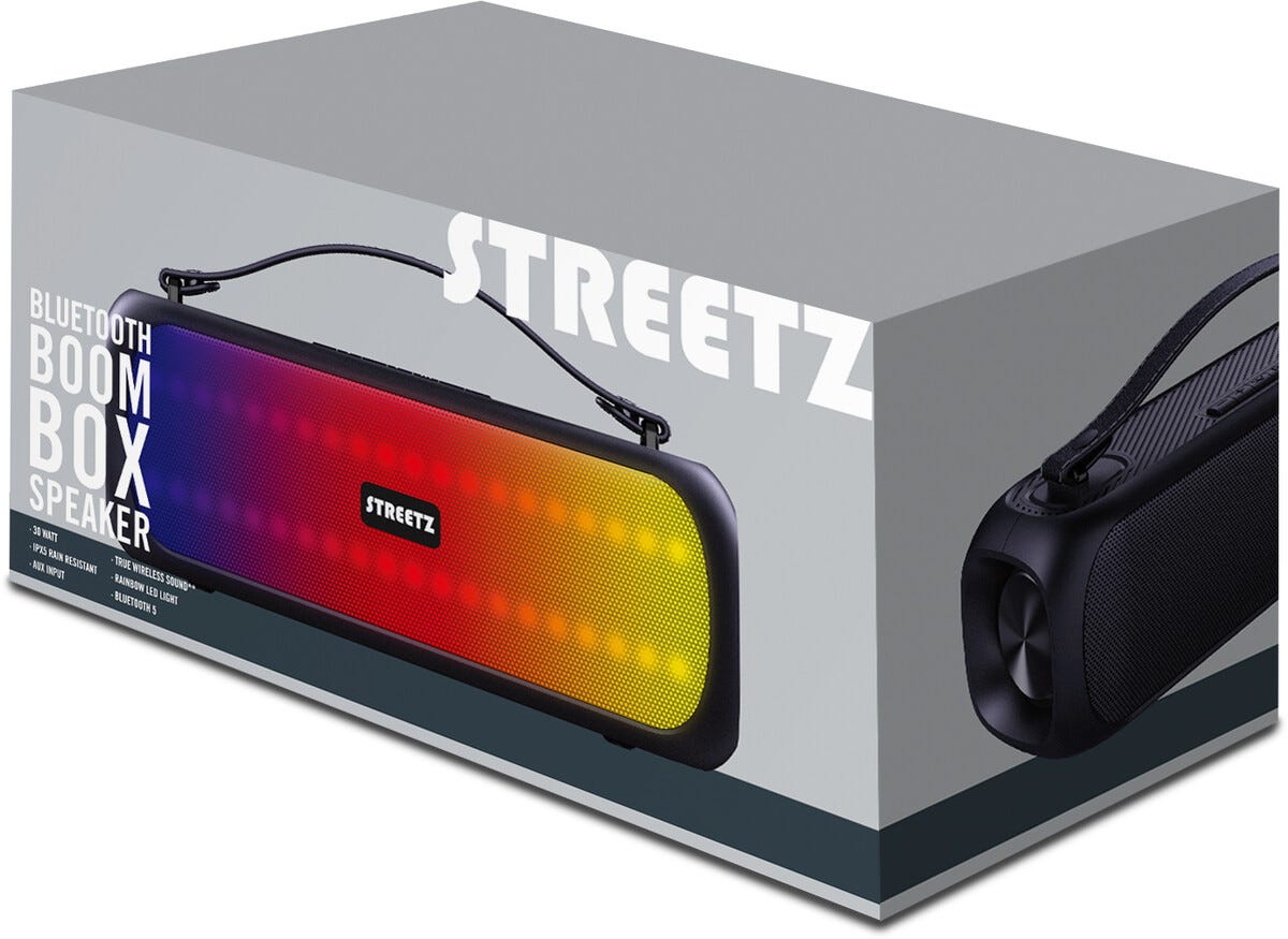 Streetz Boombox Bluetooth-høyttaler med RGB belysning.