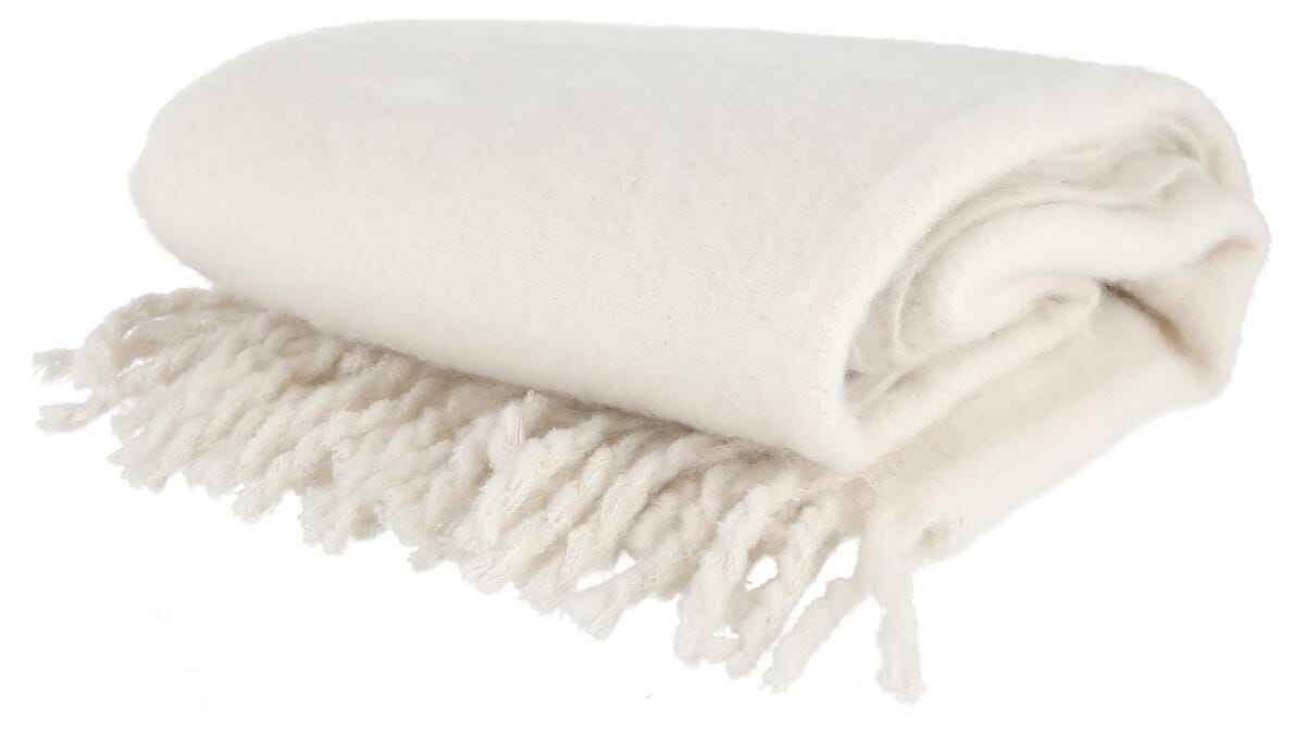 • Deilig, hvitt pledd til sofaen eller sengen.