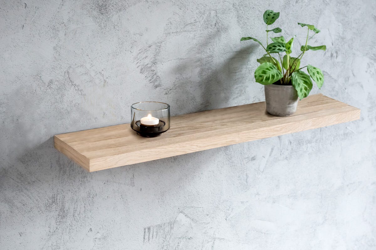 Svevende vegghylle i FSC-eikefiner, 60 eller 80 cm