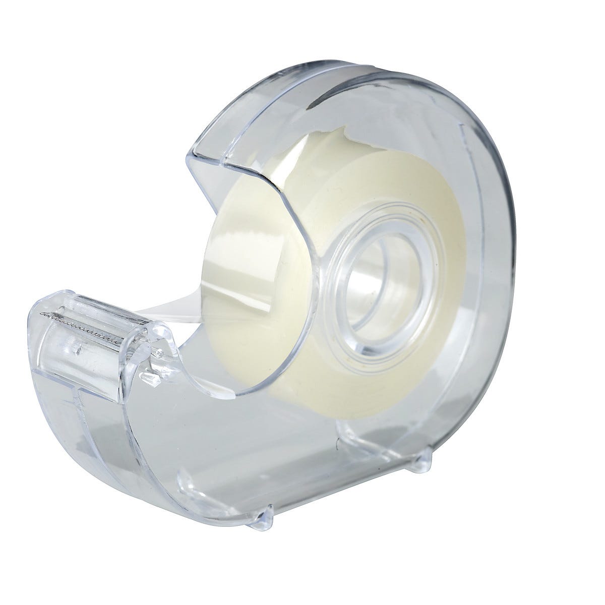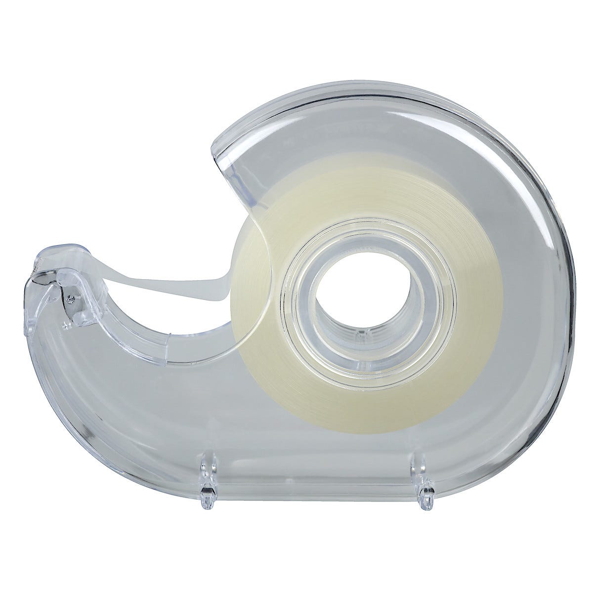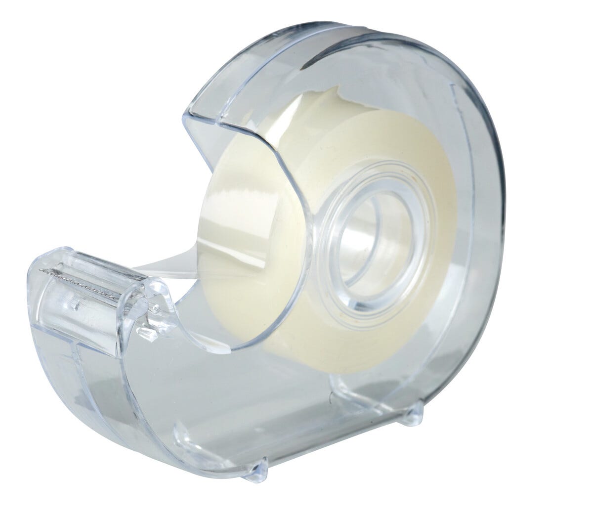 • Klassisk teipdispenser med gjennomsiktig teip.