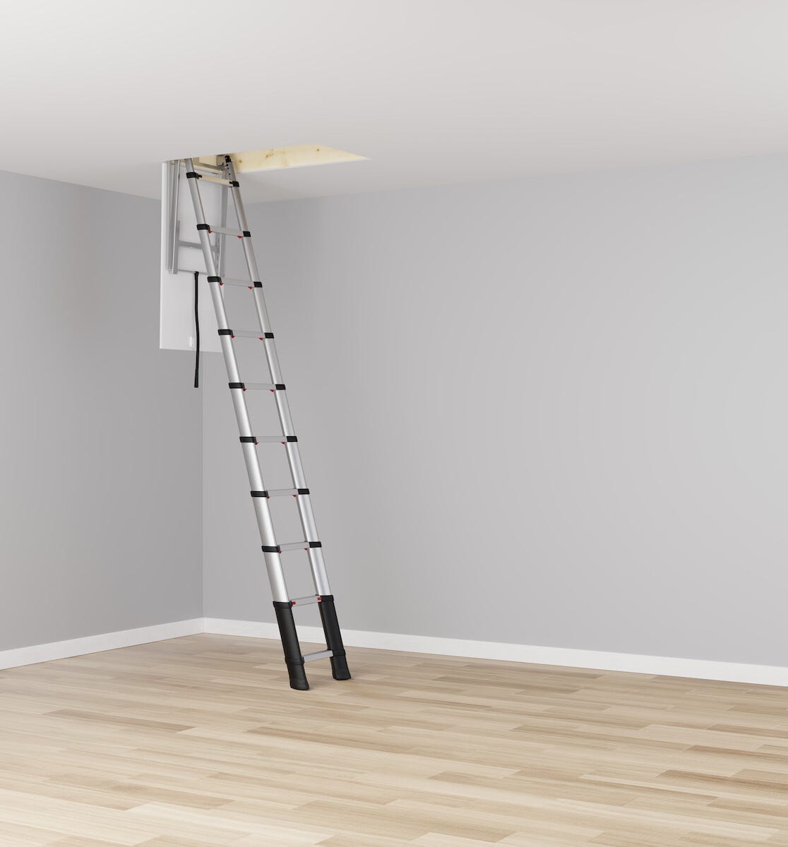 • Stabil og sammenskyvbar loftsstige – fra 2,95 m til 110 cm med to knappetrykk.