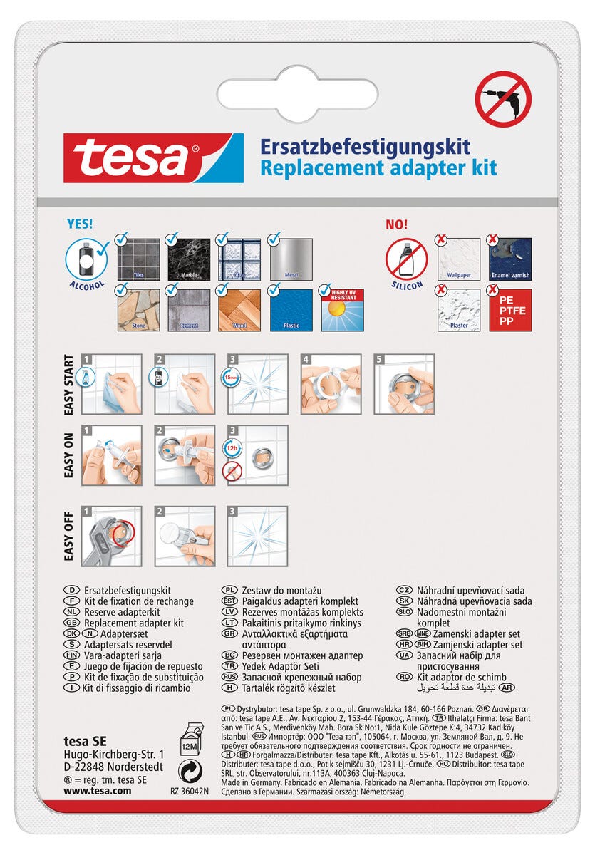 • Sterk vedheft med Tesas selvklebende Power.Kit-teknologi.