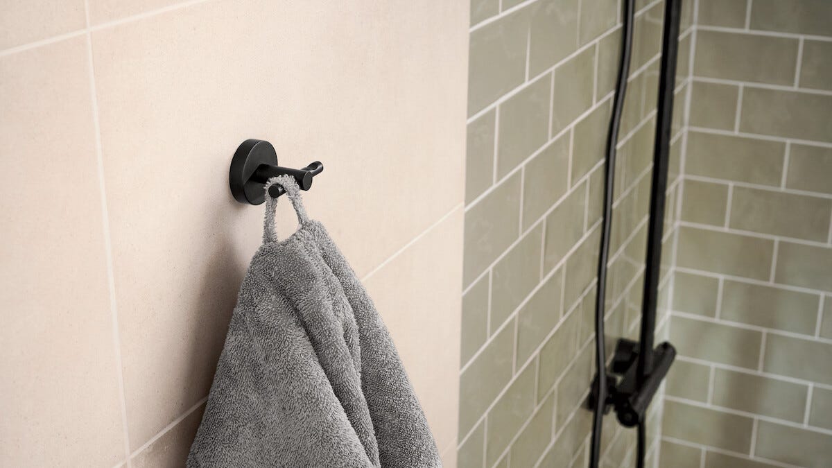 • Svarte, doble håndklekroker fra serien Tesa Moon.