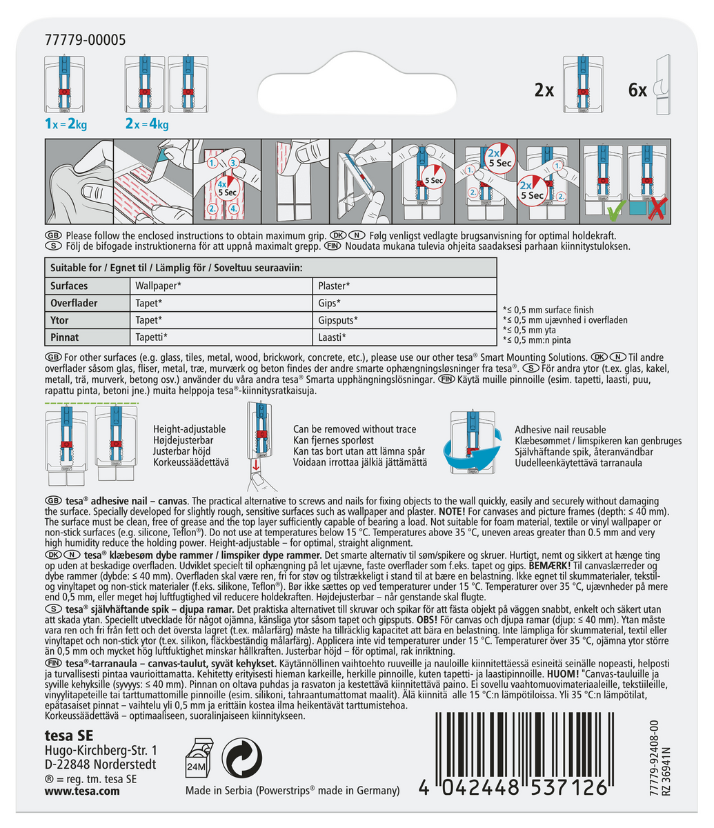 Tesa limspiker canvas, 2-pakning