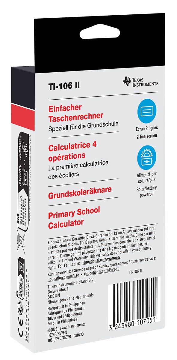 • Texas TI-106 II Solar – robust kalkulator for yngre elever.