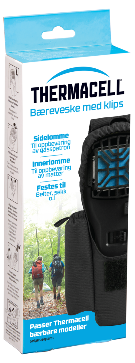 • Etuiet gjør at du kan bære med deg din Thermacell MR150, MR300 og MR450 og ha begge hendene frie.