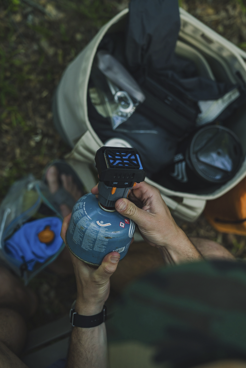 • Myggjager som monteres på gassbeholder for stormkjøkken.