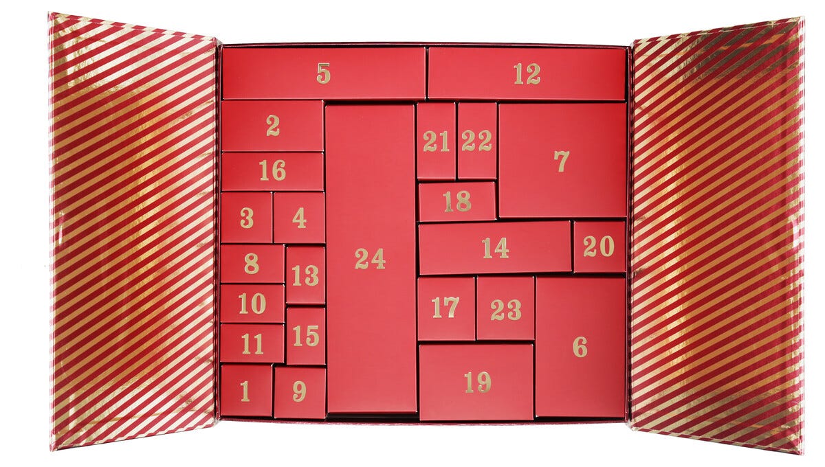 • Tom adventskalender du kan fylle selv, med godterier, gaver eller meldinger.