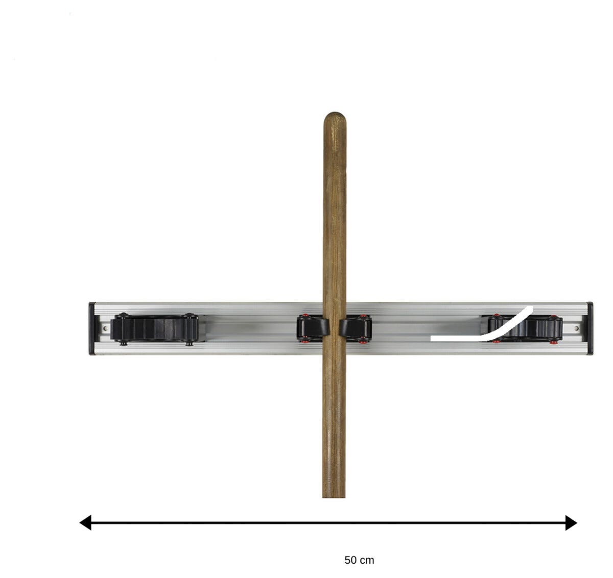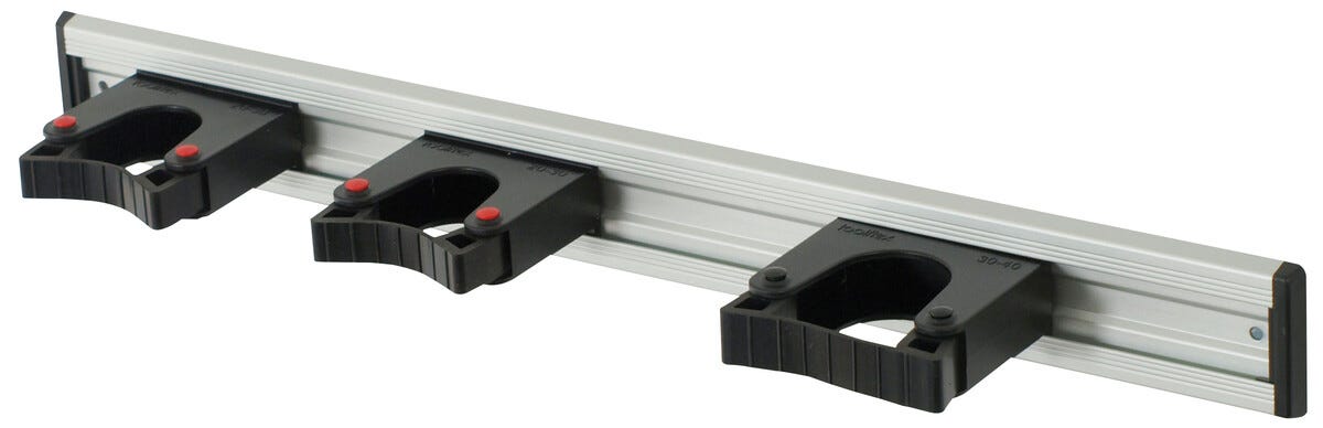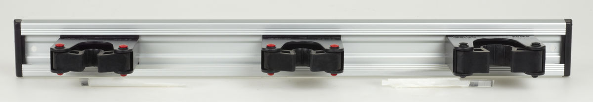 Aluminiumskinne med holdere som kan flyttes sideveis.