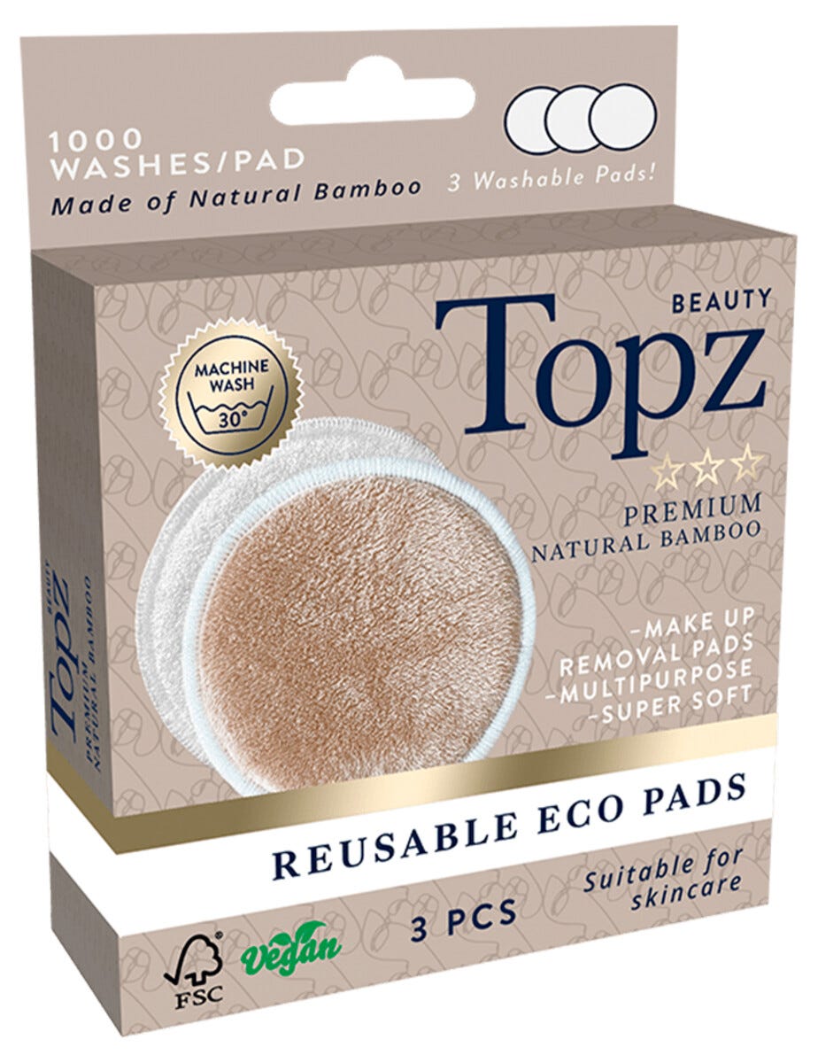 Topz Beauty Reusable Eco Pads flergangspads, 3-pakning